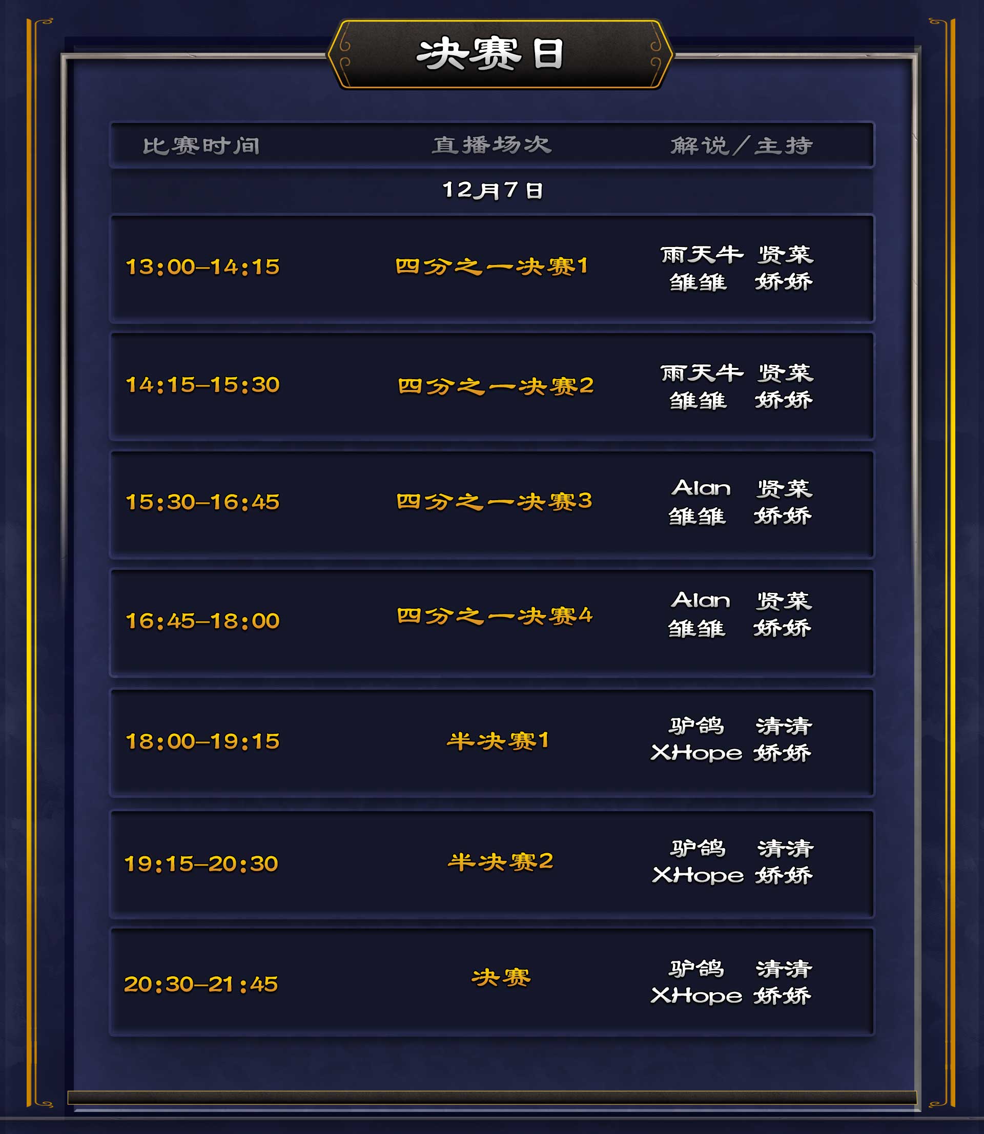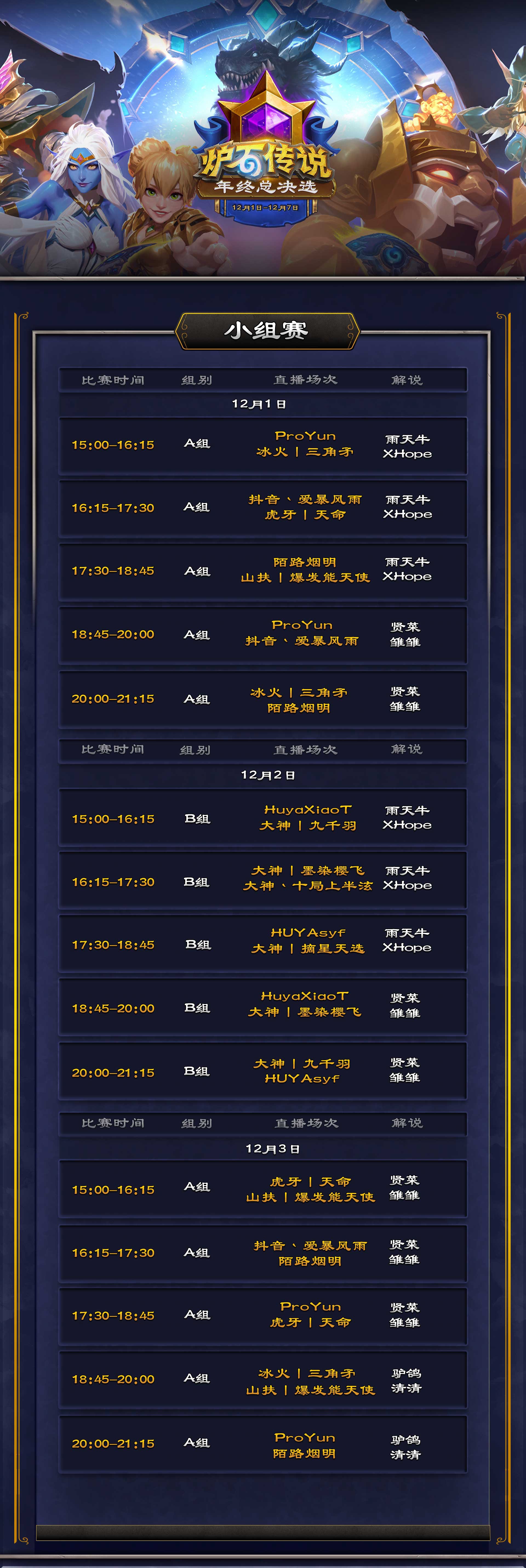 12月1日至12月7日,锁定各大平台暴雪游戏频道,一起见证巅峰对决。