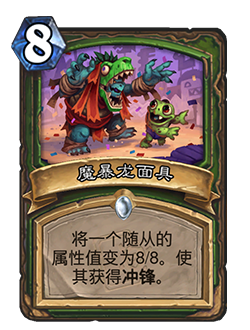 让随从化身为过去的经典野兽,将对手光明的未来彻底抹除。暴龙王克鲁什的纯粹速度和惊人力量,就是魔暴龙面具的赐福!