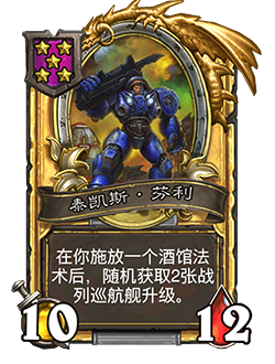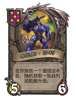 - 5/6。在你施放一个酒馆法术后,随机获取一张战列巡航舰升级。
