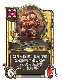 - 3/7。战斗开始时:复制你最左边的两个进击效果(石壳守卫的除外)。