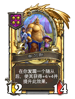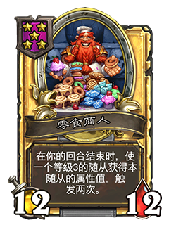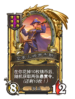 - 财宝囤积:在第5/6/7/8/9回合,发现一个等级3/4/5/6/7的金色随从。(还剩4/5/6/7/8回合!)