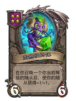 - 泛泛之盟:在每个回合开始时,随机获取一张你的多数随从的类型的随从牌。(第2回合解锁。)