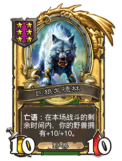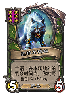 - 改动后:5/5。亡语:在本场战斗的剩余时间内,你的野兽拥有+5/+5。