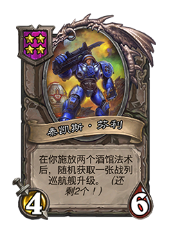 - 改动后:[等级4] 4/6。在你施放2个酒馆法术后,随机获取一张战列巡航舰升级。(还剩2个!)
