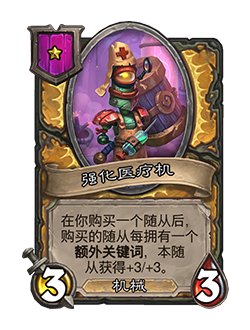 - 改动前:[等级3] 6/4。在你购买一张牌后,酒馆中的随从在本回合中拥有+2/+1。