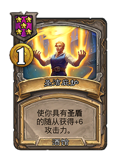 - 改动后:使你具有圣盾的随从获得+6攻击力。
