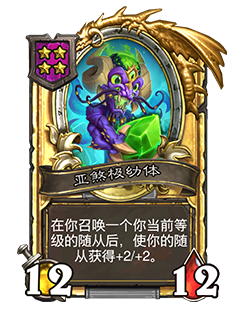 - 改动后:[等级5] 6/6。在你的回合结束时,使一个等级3的随从获得本随从的属性值。