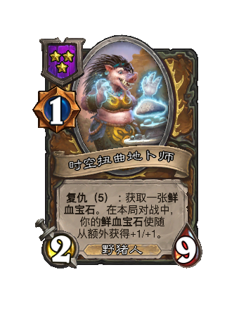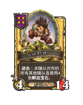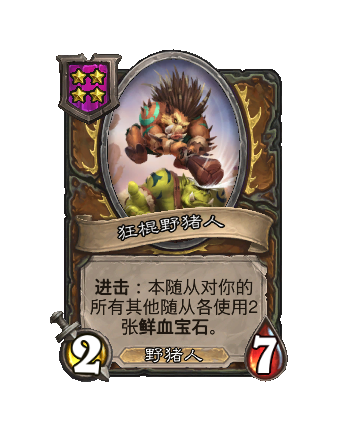 - 改动后:在你出售一个野猪人后,本随从随机对一个友方随从使用3张鲜血宝石。