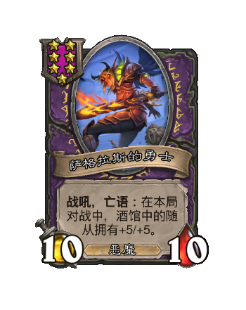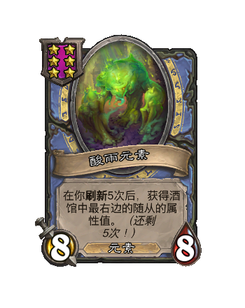 - 改动后:8/8。在你刷新5次后,获得酒馆中最右边的随从的属性值。(还剩5次!)