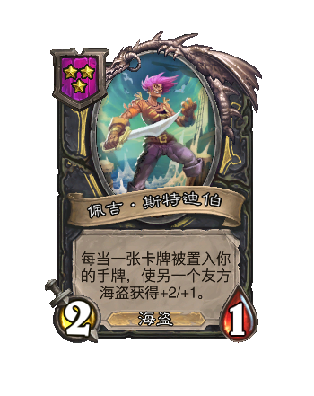 - 改动后:2/1。每当一张卡牌被置入你的手牌,使另一个友方海盗获得+2/+1。