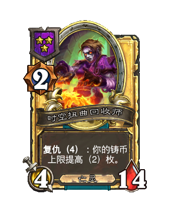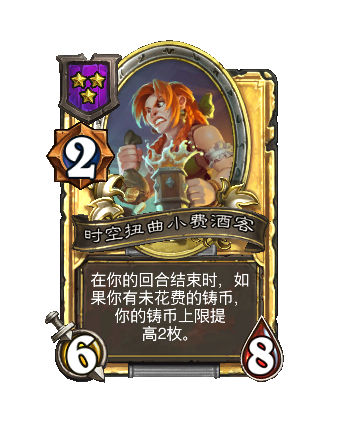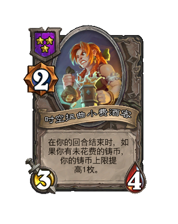 - 改动前:[1时光标记]在你的回合结束时,如果你有未花费的铸币,随机获取随从牌和酒馆法术牌各一张。