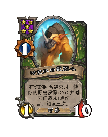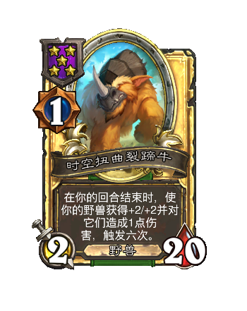 - 改动后:在你的回合结束时,使你的野兽获得+2/+2并对它们造成1点伤害,触发三次。
