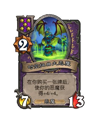- 改动后:在你购买一张牌后,使你的恶魔获得+4/+4。