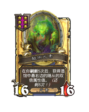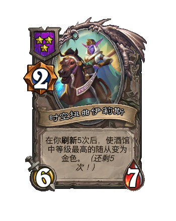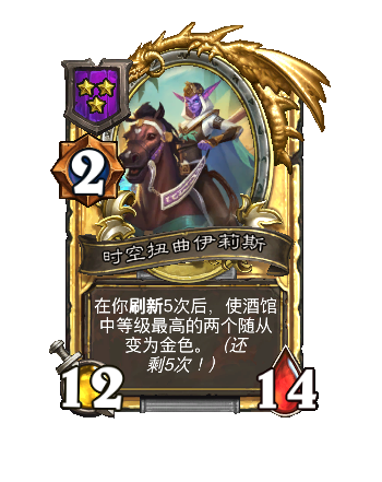 - 改动后:在你刷新5次后,使酒馆中等级最高的随从变为金色。(还剩5次!)