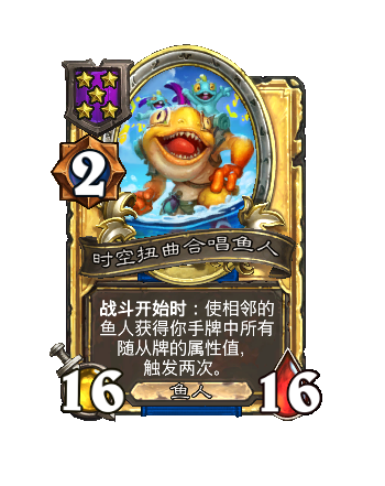- 改动后:战斗开始时:使相邻的鱼人获得你手牌中所有随从牌的属性值。