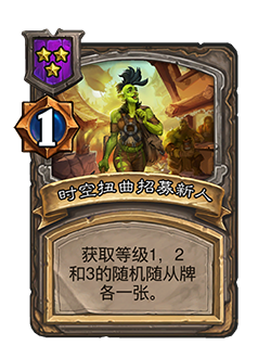 “时空扭曲酒馆”每局游戏会出现两次,每次都会呈上五张全新的特殊卡牌供你挑选。小型时空扭曲会在第6回合开启,大型时空扭曲则会在第9回合开启。这家商店中的卡牌是你在普通酒馆中无法找到的,包括: